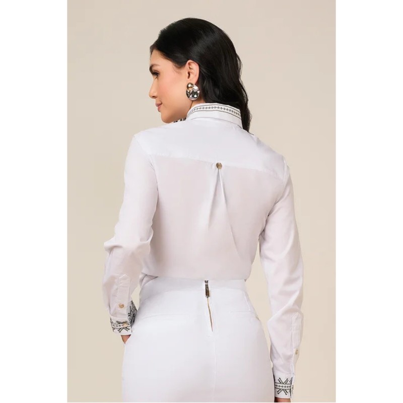 Camisa Branca de Tricoline Bordada Titanium Jeans