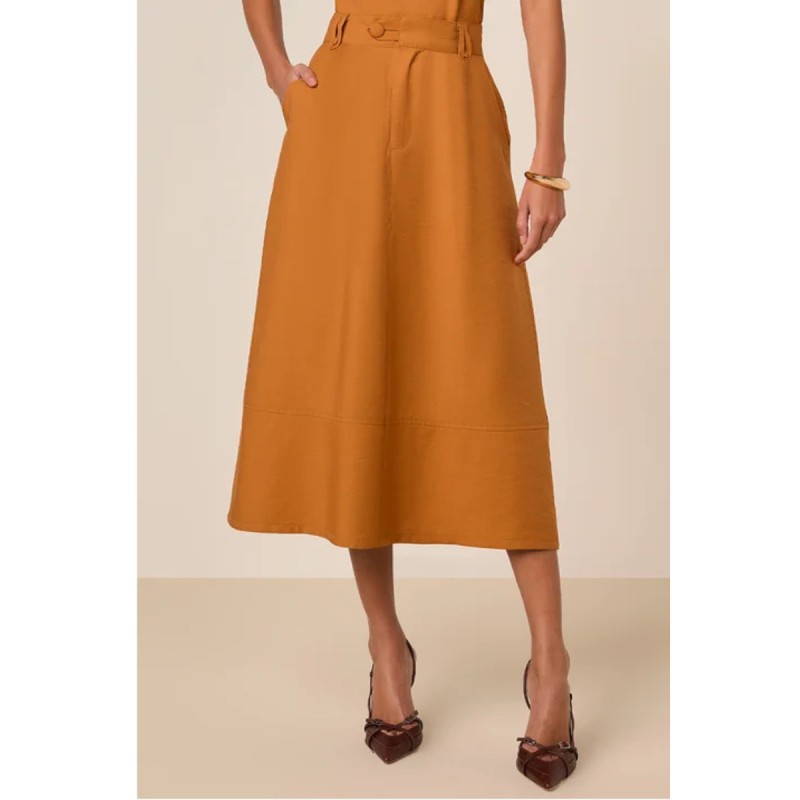 Saia Mídi Semi Godê Alfaiataria de Viscose Guaraná Titanium Jeans (TTN27834)